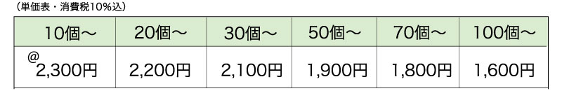 全てを含んだ「オールインワンプライス」です。10個以上1個単位で承ります。