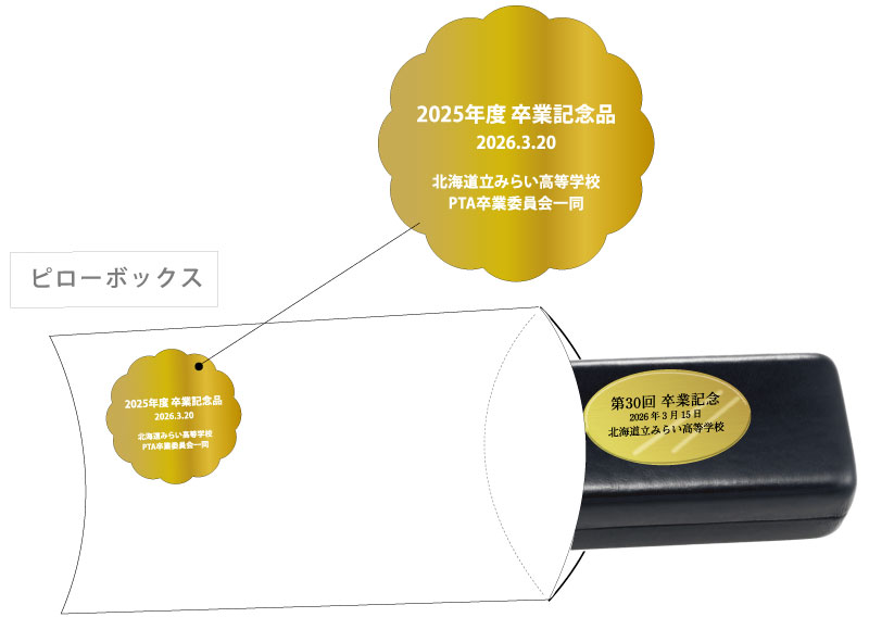 ピローボックスにオーナメントシールを貼って納品いたします。